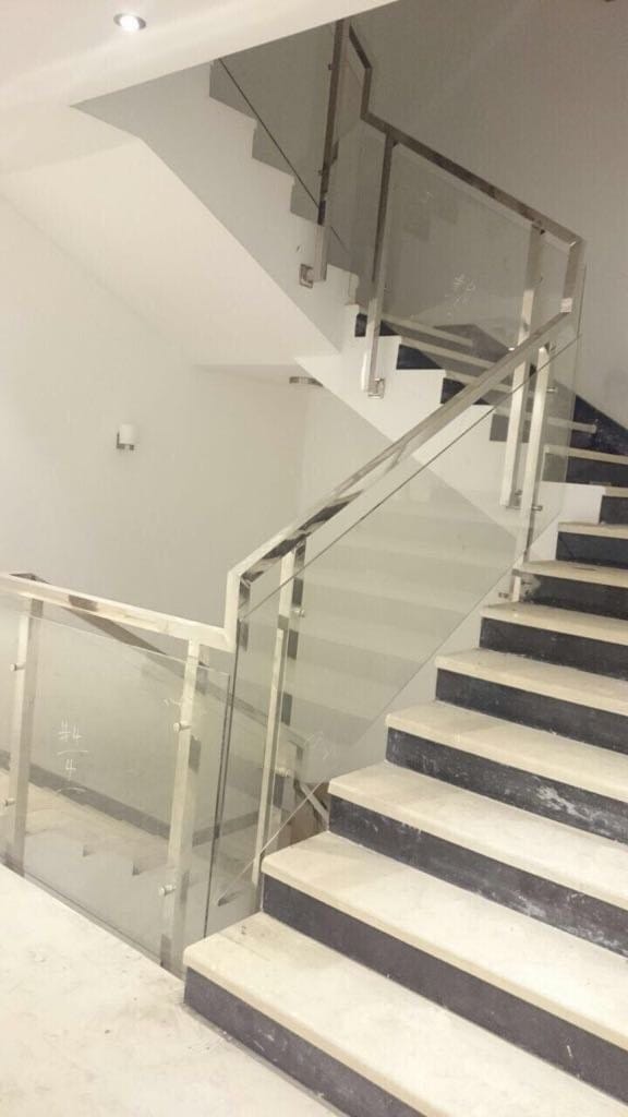 درابزين عصري من الستانلس ستيل والزجاج يوفر الأمان والجمال، مع تشكيلة واسعة تناسب الفلل، الشركات، والمنازل.